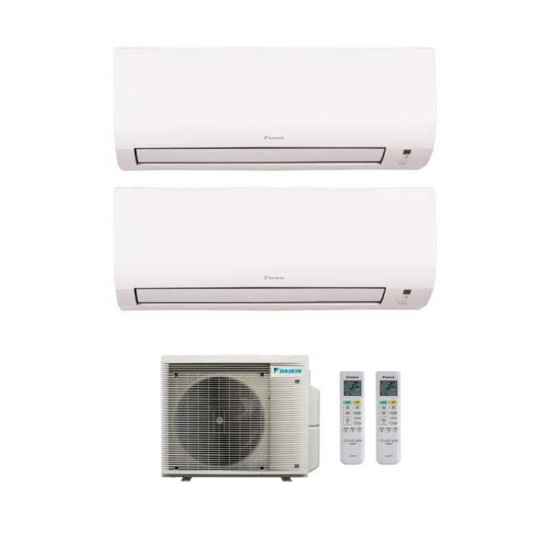 Daikin Climatizzatore 7000 9000 BTU Dual Split Inverter GAS R-32 condizionatore silenzioso in pompa di calore, climatizzazione ad alta efficienza con telecomando incluso, caldo freddo, deumidificatore con pulizia filtri facilitata. Ottima soluzione per il comfort in tutti gli ambienti della tua casa o del tuo ufficio. Unità esterna e Unità interna ad Alta tecnologia con componenti di qualità e massima affidabilità nel tempo.